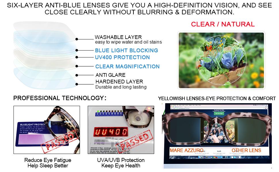 • Blue light blocking reading glasses 2.00 against high energy blue rays from digital screens(computer, phone, pad, TV, LED, etc.). Large frame readers with retro oversized square style and unique groove design will make you more stylish and attractive. Designer reading glasses also has +1.00 to +6.00 accurate strength to get great clarity for daily wear.