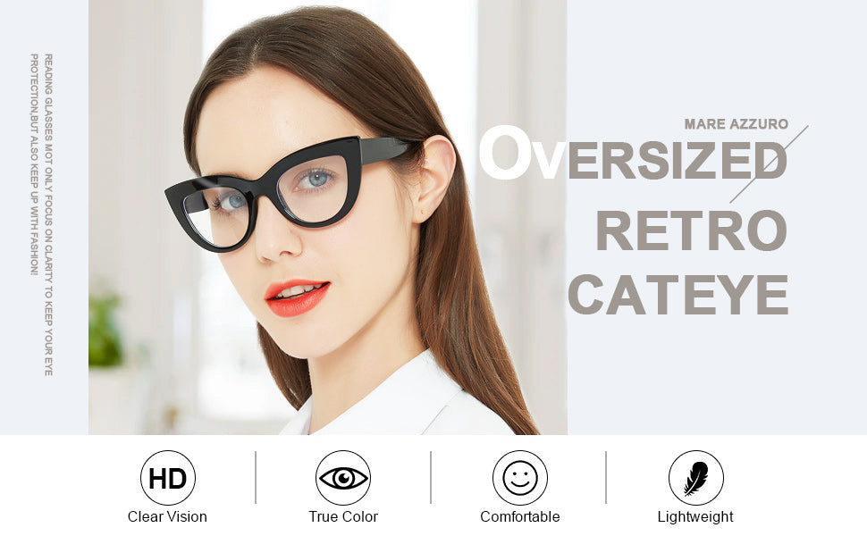 MARE AZZURO Retro Cat Eye Reading Glasses Women Large Frame Readers (1.0-6.0)