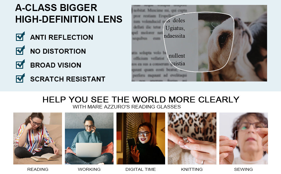 MARE AZZURO Oversized Reading Glasses For Women Large Square Readers 1.0 1.5 2.0 2.5 3.0 3.5 4.0
