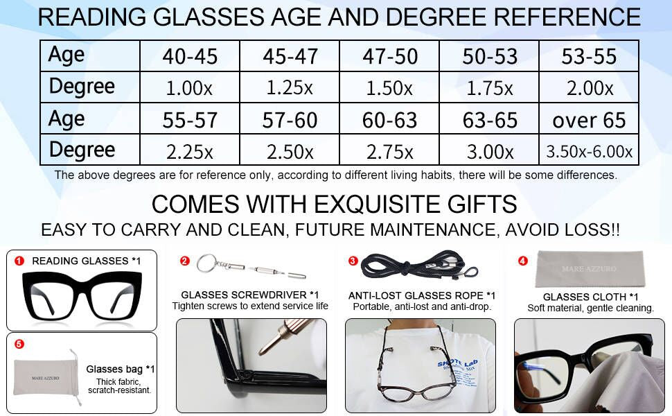 - Extra oversized reading glasses for women 1.00 - Big readers with stylish square shaped give you a high fashion look to show your unique statement style. Designer reading glasses at a great price with exquisite gifts, also has +1.00 to +4.00 accurate magnification to meet your daily needs. (small face, please be discreet to choose)
